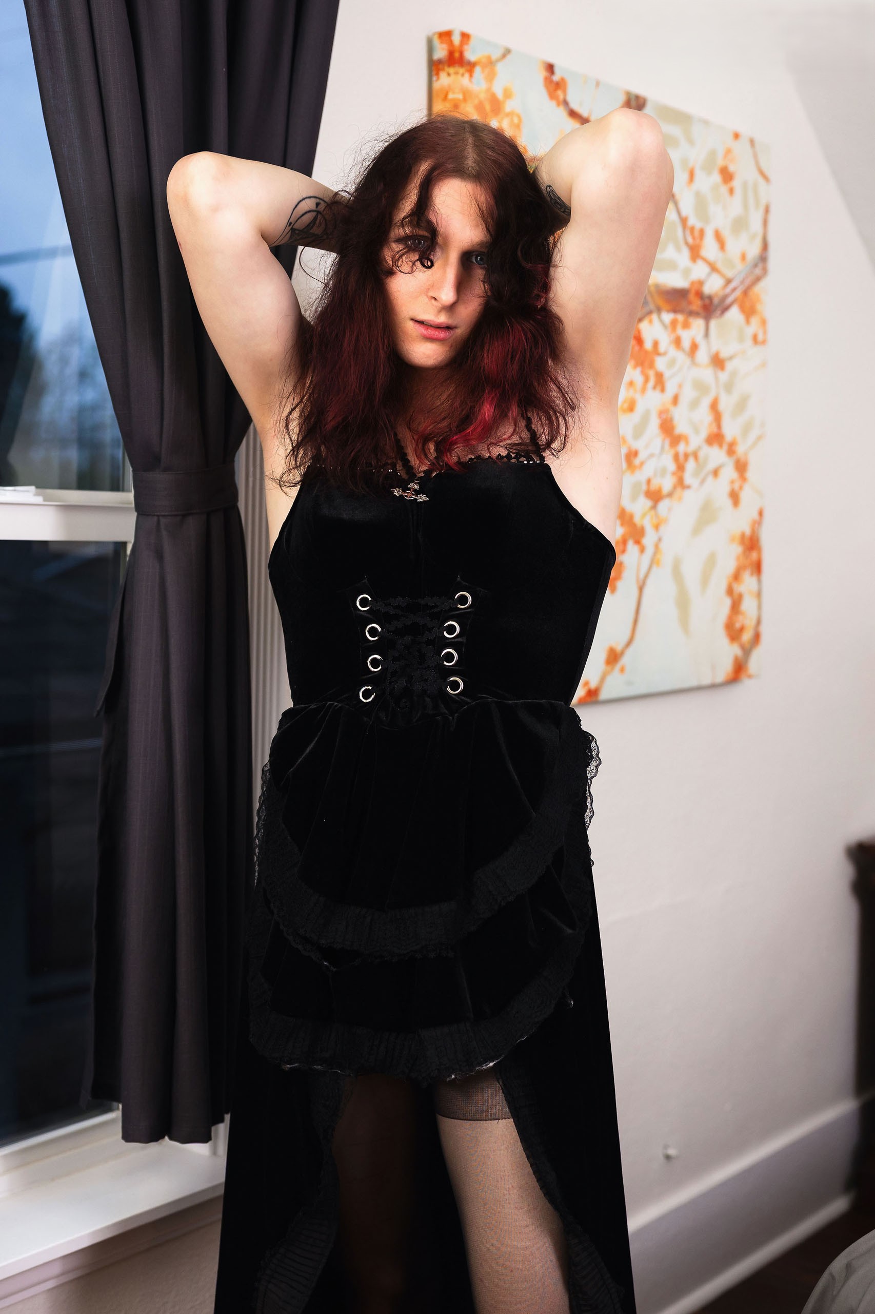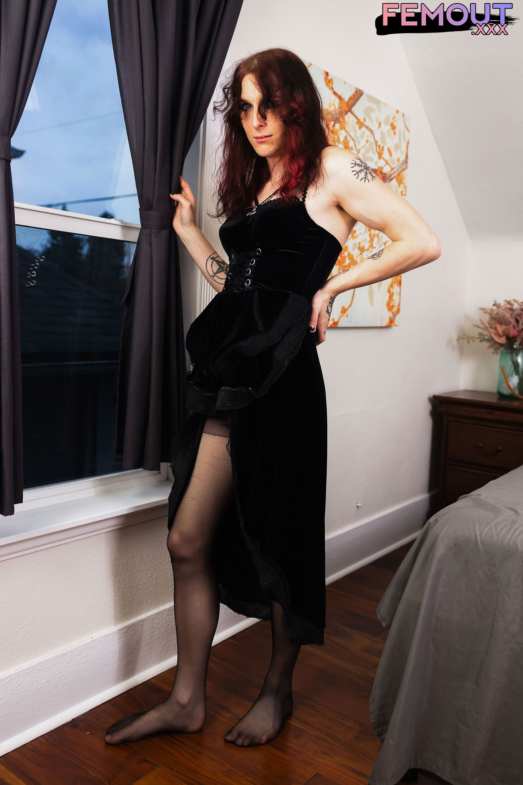 Not bad, as in, she's not good sex, but bad as in, if you were in bed with Demoness, you know bad things are good to happen, and you are going to love it all. Sexy black and red lingerie with a red choker, which all match her look and vibe - but once she's got us excited showing herself off, she wants to get herself excited and strips down, her uncut cock hard and sticking out straight from her...