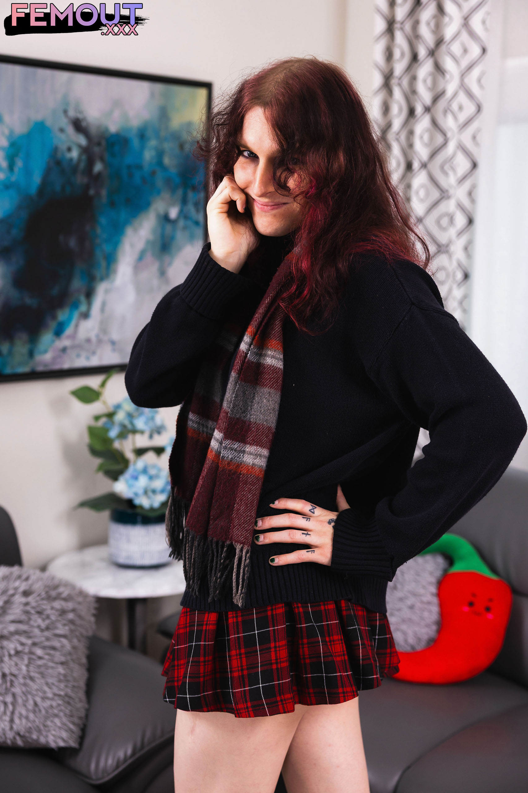 Fox Valentine returns! This pretty 22-year-old with a great body, lovely smooth skin, long legs, budding boobs, and a cock that grows to a nice size. She can also take a dildo like a world champion, and she's out to prove it on this set, as in front of Omar's camera, she's got quite the toy, which she slides into her tight asshole, making her drip pre-cum and moan. After she spreads her asshole, which...