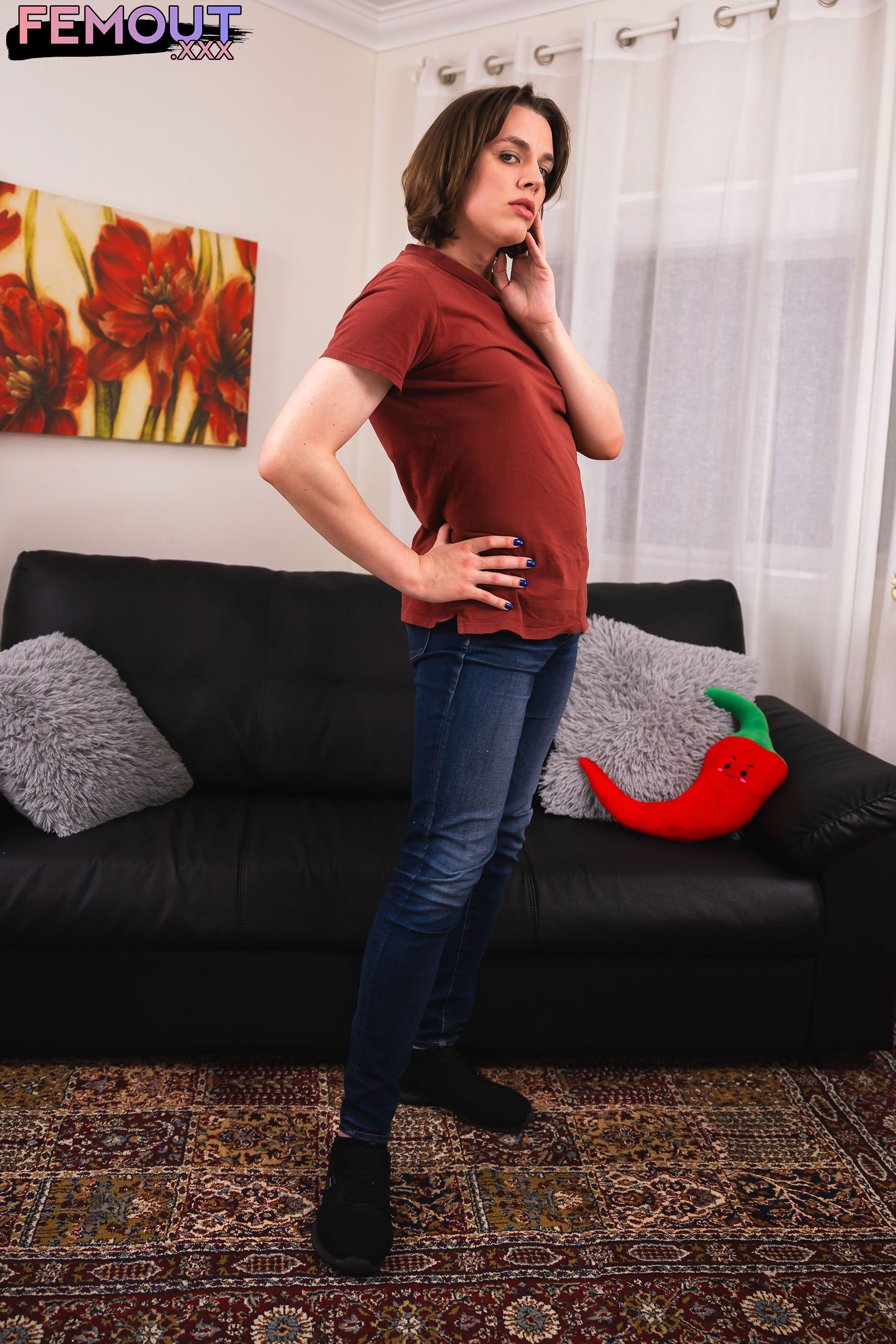 Stella is a pale, platinum blonde 23-year-old from Russia making her debut on Femout today. A pretty girl with a hot bod who I think will be popular. In her first set, she gets straight into it, stripping out of her jean skirt as she shows off her sexy bubble butt! She's brough her dildo to the shoot, and shows you how she likes to use it, fucking herself while on her knees. A strong debut...