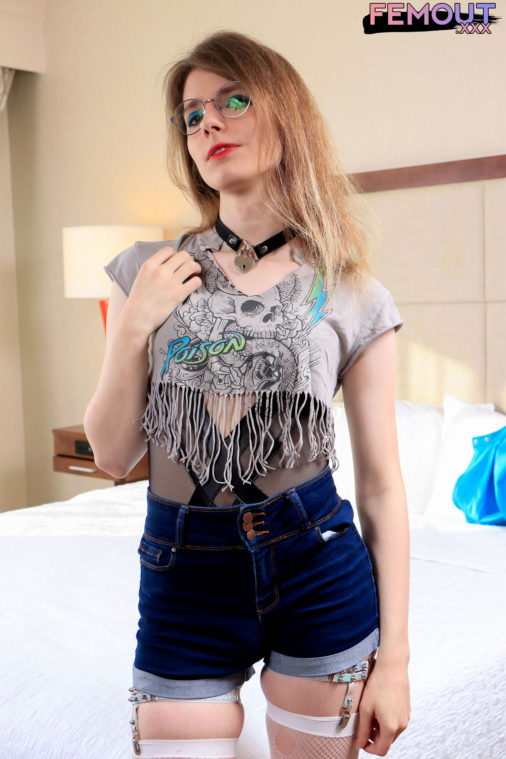 Fox Valentine returns! This pretty 22-year-old with a great body, lovely smooth skin, long legs, budding boobs, and a cock that grows to a nice size. She can also take a dildo like a world champion, and she's out to prove it on this set, as in front of Omar's camera, she's got quite the toy, which she slides into her tight asshole, making her drip pre-cum and moan. After she spreads her asshole, which...